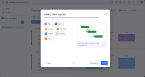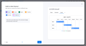 We already had an existing wizard, designed to guide users with their first board creation in the onboarding flow. For this solution, we thought about creating a new design with several new features. But because we first tested our hypothesis before putting a lot of effort into the solution, we decided to use the existing wizard from the onboarding process and only make minor adjustments. Since the final design touches aren’t the crucial point here, the overall solution is.