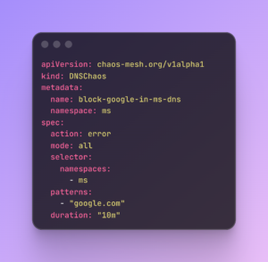 Our platform relies on various third-party APIs and external services. We use DNSChaos to simulate DNS resolution failures for specific external domains.
