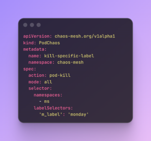 Crucially, since we run these experiments in a shared staging environment, we need strict control. We utilize the selector capabilities in Chaos Mesh to define the exact “blast radius.”